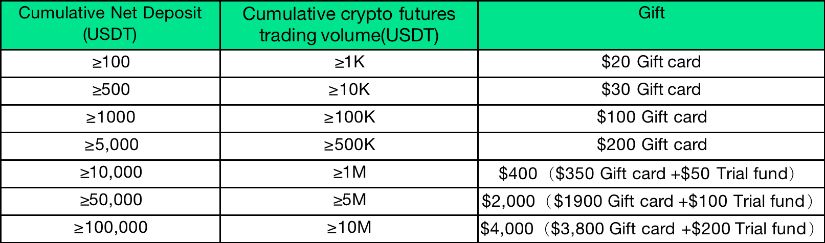 During the event, newly registered users can win up to $4,000 point after finishing the first deposit and make futures trading (USDT-Margined).